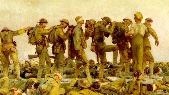 Трагическая картина «Отравленные газом» уже больше столетия служит визуальной аллегорией Первой мировой войны. Сейчас реставраторы вернули произведению первоначальный облик: закатное небо над полем битвы стало нежнее, а страдания солдат — нагляднее
