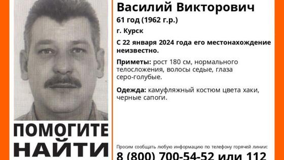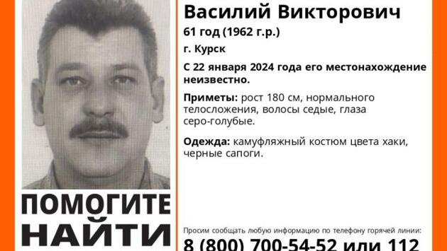 Волонтёры просят помощи в поисках 61-летнего мужчины из Курска Пропал Аксенов Василий Викторович. - С 22 января 2024 года его местонахождение неизвестно, - сообщают волонтёры отряда "ЛизаАлерт". Информацию о мужчине можно оставить по телефону: 8 919 276 08 21.