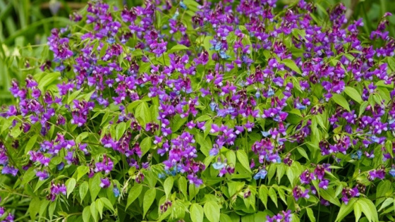 Чины с розовыми, пурпурными цветками удачно впишутся в
