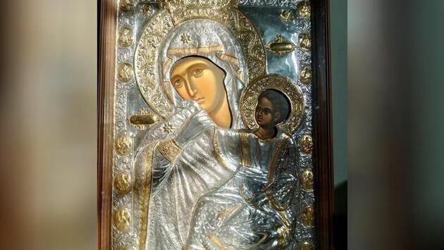 На странице Читинской епархии в соцсети «ВКонтакте» уточнили, что икона является точной копией чудотворной иконы Божией Матери «Отрада и Утешение» хранящейся в Ватопедском монастыре Афона.