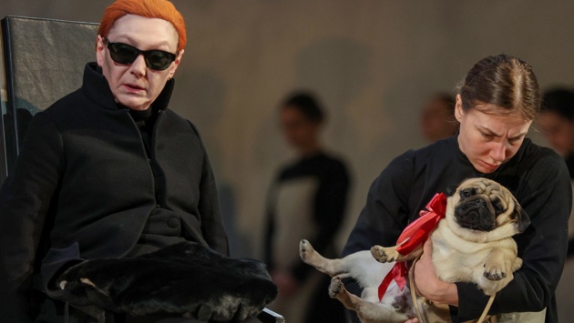 Режиссер и его соавтор по сценической адаптации Светлана Щагина на этот раз бережно обошлись с текстом пьесы, тщательно подновив меланхолические руины и снабдив их кое-где поясняющими титрами. Благодаря им мы узнаем о деятельности Павла, в том числе - об указе, предписывавшем всем дворянам при виде его кареты опускаться на колени. В этом момент, кажется, и вывозят на сцену высокое чёрное кресло с сидящей в нем Княжной - Мариной Игнатовой, в чёрных очках, элегантном чёрном жакете, чёрных брюках и начищенных до блеска чёрных жокейских сапогах. Экстравагантная и печальная, с выбеленным лицом и коротким рыжим паричком, она напоминает скорее Гамлета, чем дикую русскую крепостницу. Величественное, жутковатое ее присутствие завораживает не только челядь, но и зрительный зал. Игнатова умудряется играть так, что по ходу действия "великое сидение" ее героини все меньше кажется протестом и все больше - самоистязанием за тот грех, о котором она, кажется, ни на минуту не забывала. Этот мощный мелодраматический замес судьбы и увлек когда-то первых исполнительниц этой роли - великих русских актрис Марию Савину и Марию Ермолову.