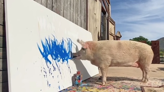Талант художника у свиньи обнаружился случайно: она нашла забытые в клетке малярные кисти и начала рисовать. Успех Пигкассо принесло полотно под названием "Дикая и свободная". Картина была продана за 20 тысяч фунтов стерлингов, что стало рекордом для произведения искусства, написанного животным.