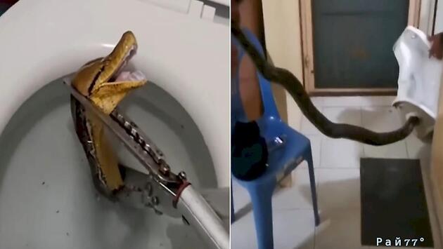 Операцию по вызволению питона, застрявшего в унитазе, провели в Таиланде