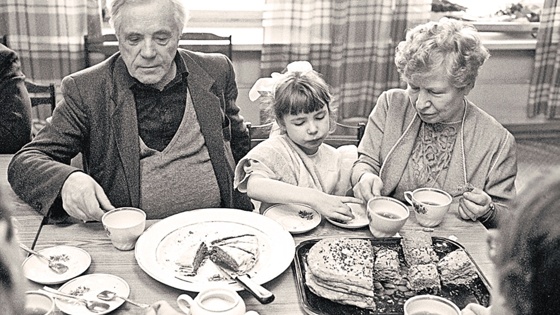 Виктор Петрович достал очки, взял текст, закрылся в комнате. Проходит полчаса, час - не выходит. Пельмени стынут. Миновало часа полтора. Волнуемся - не за пельмени, а за старика - все ли в порядке? Заглянули осторожно - сидит правит, на нас рукой машет. Через два часа вышел, утирая платком пот со лба: "Ну, умучили вы меня..."