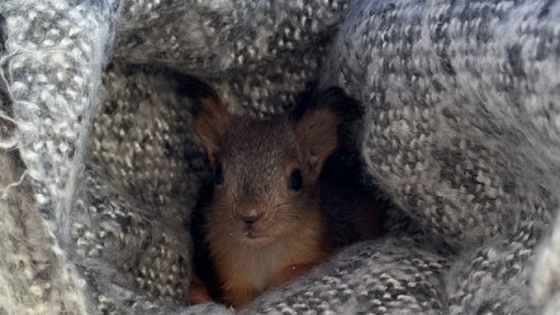 Теперь, признается Кристина, бельчонок живет в кошачьей переноске.
