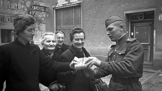 Елена Сенявская: Многие немцы более или менее определенно знали, что именно произошло в Советском Союзе, и с ужасом ждали заслуженного возмездия. Один немецкий отпускник, служивший в СС, говорил своей матери: "Если сюда придут русские, то они не будут обливать вас розовым маслом". Акты мести были неизбежны. И руководство нашей армии принимало суровые меры, чтобы не допустить бесчинств.