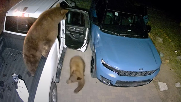 На кадрах заметно, как два медведя осторожно подошли к припаркованным Jeep Grand Cherokee и Dodge Ram 1500. Одно из животных сразу залезло в кузов пикапа, в то время как второе за несколько секунд открыло заднюю пассажирскую дверь, потянув на себя ручку. Через несколько мгновений медведь уже искал в салоне еду.