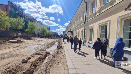 Горожане и гости Оренбурга гуляют среди пирамид старой плитки и по грязи после дождя. В некоторых местах, где уже успели снять старое покрытие дела обстоят лучше. А вот в районе Гостиного двора после ливня скопилась вода.