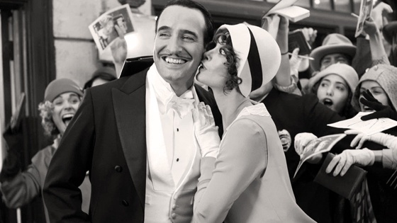 "Артист" Мишеля Хазанавичуса - фильм-изумление: в век Dolby режиссер отважился снять немое черно-белое кино! Картина воссоздает тот "предсмертный" период в жизни Великого Немого, когда изобрели "говорящую фильму", и многие звезды остались без работы: понадобились актеры, способные петь и танцевать. Главные герои Джордж Валентайн (Жан Дюжарден) и Пеппи Миллер (Беренис Бежо) напоминают Джина Келли и Дебби Рейнольдс в "Поющих под дождем" - "Артиста" можно считать вольным ремейком, из жанра мюзикла переведенным в стиль немой комической мелодрамы.