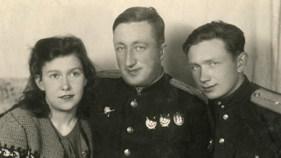 — С кем он только не был знаком, — вспоминает она. — И про Лялю Черную рассказывал, и про артиста Жарова, дружили они с Водопьяновым и Коккинаки, а вот он на фото с композитором Дмитрием Покрассом и летчиком Анатолием Ляпидевским… Все мои воспоминания о нем — невероятно радостные. И никогда ни слова он не говорил про войну. А уж о полетах на Берлин — и подавно…