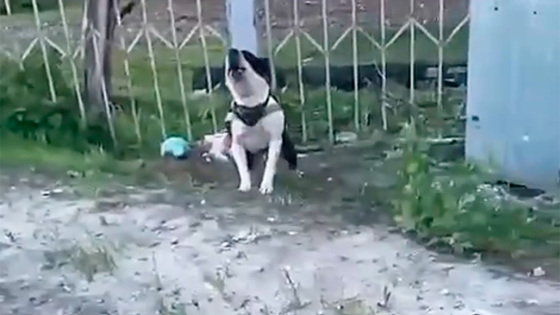 Хозяин терьера привязал его к забору на трассе в Подмосковье и уехал