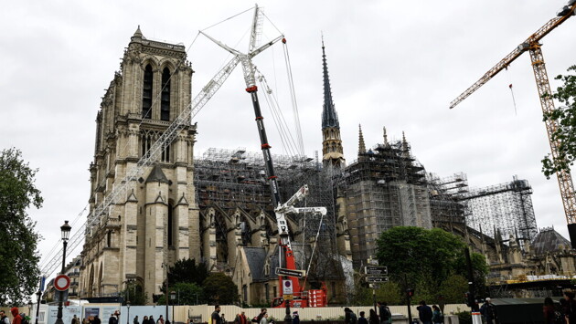 На крышу Нотр-Дама подняли отреставрированный крест весом в две тонны