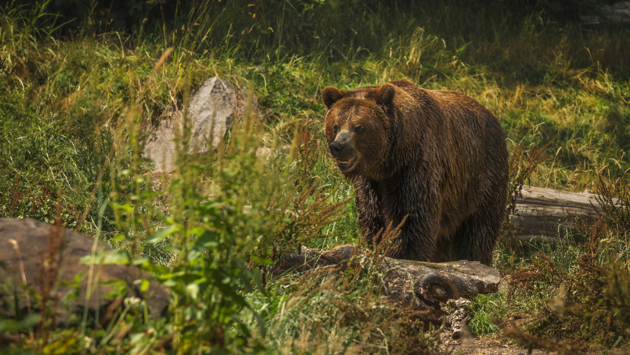 Не смотрите ему в глаза и не поворачивайтесь спиной. Станьте так, чтобы ветер дул от медведя, чтобы он не почуял запах человека. Не пытайтесь убежать — медведи только кажутся неповоротливыми, на самом деле они развивают высокую скорость. Пробуйте отходить медленно, без резких движений, перед собой бросайте вещи — рюкзак, шапку и т.д. Это отвлечёт хищника и позволит вам выиграть время.