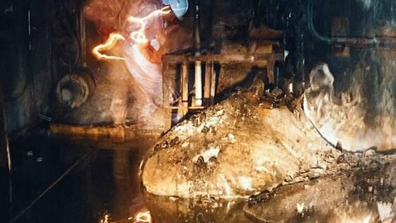 Радиоактивный натек, позднее получивший название «слоновья нога», имел серый цвет с металлическими бликами и стекловидными вкраплениями по бокам. Специалисты сразу предположили, что в составе этой массы был свинец, который сбрасывали с вертолетов, чтобы охладить зону реактора за счет потребления тепла при расплавлении этого металла. Предварительная оценка веса объекта – 11 тонн.
