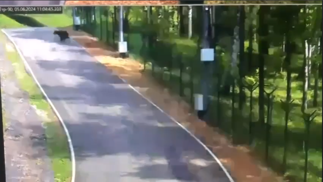 Через некоторое время зверь, который на деле оказался медвежонком, убежал с территории, но туда все равно пока никого не пускают. Очевидцы разместили в социальных сетях видео, на кадрах которого видно, как медведь бежит, сносит сетку у забора и прорывается на территорию спорткомплекса.