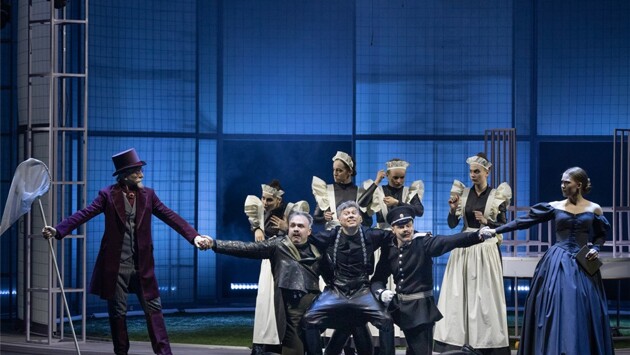 Музыка (в том числе прямо хард-рок, а также инструментальные версии международных рок-хитов) звучит всю дорогу (спектакль длится почти три часа с антрактом). Много экспрессивных движений, а то и прямо танцевальных номеров – хорош кордебалет, изображающий нечистую силу (группа актрис, обозначенная просто "Химеры"). Единственно, в спектакле не поют, а это прямо напрашивается, исходя из формата: ария Троекурова, дуэт Маши с Дубровским…. Без песен, прямо скажем, действие несколько провисает, и возникают вопросы к его формату. Пляшут, повторим, все. Довольно забавно наблюдать активно приплясывающих не слишком юных актеров Дениса Суханова (Дубровский-старший) и Игоря Гузеева (Троекуров). Между тем, главный нерв версии Ломкина именно в их отношениях (сам Владимир и Маша – Никита Смольянинов и Ася Войтович, выглядят бледнее, да и пляшут меньше). Обе отцовские фигуры – яркие эксцентрики, каждый по своему. Весьма запоминается сцена, как Дубровский-старший при нас сходит с ума, делая это очень экспрессивно. Как вам такой поворот: мертвый Дубровский-старший является к обидчику в кошмарах, читает ему стихи Пушкина, опять же, пляшет в компании дев-химер, благодаря чему в том просыпается совесть, и он отпускает Дубровского-младшего, хотя мог бы сдать его полиции? Сам Пушкин там тоже есть, молча ходит по сцене туда-сюда, иной раз с удочкой… Играет его загримированная под Наше Все Антонина Рыбаловлева. Почему девица – Бог весть! Как вы уже успели заметить, над верностью пушкинскому оригиналу режиссер особо не трудился. Тут такой нюанс: если это все же ближе к опере, то претензий особо можно не предъявлять (хотя измененный финал все же способен несколько смутить). Оно и в оперной "Пиковой даме", например, финал не тот, что у Пушкина. Но, повторю, это опера какая-то недоделанная. Как будто сэкономили на вокалистах! Ближе всего представленное "Сатириконом" к некоему синтетическому жанру, в свое время (да и теперь) любимому провинциальными ТЮЗами средней руки. Вроде как и представление о классике дать, и элементы чего-нибудь популярного внести, чтоб школьники от скуки зал не разнесли (Ломкин, работающий главрежем в Удмуртии, видимо, усвоил это искусство хорошо). Важно, однако, и тут соблюдать нечто вроде баланса – между оригиналом и развеселой интерпретацией. Не вполне уверен, что постановщику это удалось. Рекомендуем идти с детьми. Потому что если вы без них – зрелище (технологически вполне качественное) вызывает слишком много вопросов и сомнений. Но и детям все же не мешает сначала прочитать настоящего "Дубровского", а уж потом идти на ломкинского.