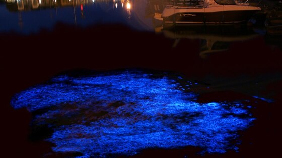 Специалисты выделяют динофлагеллят Noctiluca scintillans. По-другому его называют ночесветкой или морской свечкой. Благодаря этим водорослям и возникает свечение прибрежных вод. Эти организмы способны вспыхивать при малейшем механическом воздействии: например, при ударе волны или движении рыбы в воде.