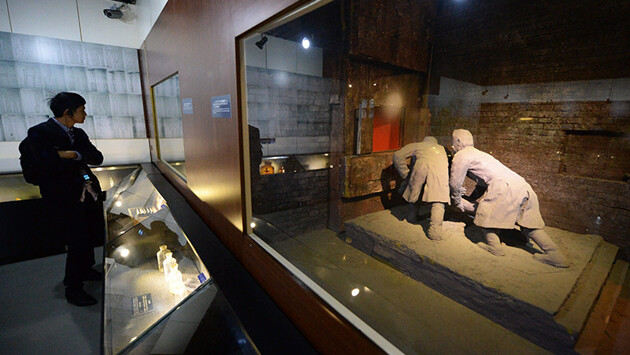 В одном строении до сих пор стоят ряды клеток, в которых содержались гигантские крысы, которых японские врачи использовали для заражения бубонной чумой. Ужасающая болезнь позже распространилась на сотни тысяч китайцев, когда в деревнях в ходе экспериментов по биохимической войне забрасывали блох, переносящих чуму. На фотографиях из книги "Отряд 731: Лаборатория Дьявола, Освенцим Востока" показаны японские солдаты, принимающие участие в вивисекции - проведении операций на живом человеке с целью изучения живых тканей и органов.