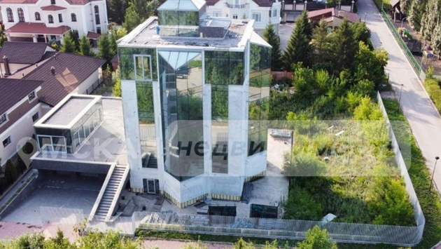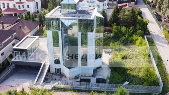 У омского дендросада продают пятиуровневый зеркальный коттедж с собственным СПА, аквариумом и кинозалом