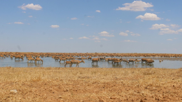 Специалисты отметили, что в самые знойные часы поведение животных меняется: они двигаются медленно, часто дышат и ищут способы охладиться. Фотоловушки, установленные в заказнике, фиксируют, как звери и птицы заходят в неглубокие разливы от артезианских скважин, чтобы найти хоть немного облегчения. Также они находят небольшие, но затененные участки, защищенные от прямого солнечного света.