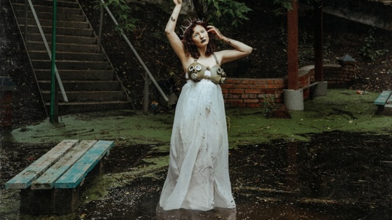 «Образ был создан из подручных материалов — белая простыня, тюль, венок из проволоки, копеечные эльфийские уши, а вишенкой на торте стал топ из детских противогазов», - рассказала ИА RuNews24.ru.