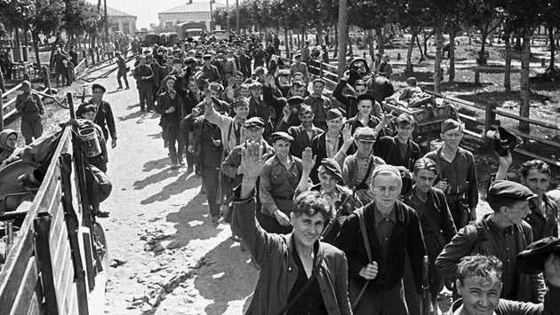 На следующий день, 17 июля, москвичи смогли наблюдать 57 тысяч 600 носителей тех самых орденов. "Здоровых и крепких немцев", среди которых было 19 генералов и 1208 офицеров, взятых только что в плен на белорусской земле во время операции "Багратион", тайно привезли в советскую столицу сорока эшелонами со станций Витебск и Бобруйск, разместили на московском ипподроме и стадионе "Динамо". Зрелище получилось потрясающее и поучительное. Большой русский писатель Леонид Леонов красочно описал его в газете "Правда":