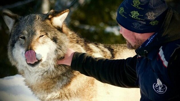 Житель Норвегии Фрэнк Андре Сома (Frank Andre Soma) уже больше 20 лет работает в природном парке Лангедраг (Langedrag). Здесь мужчине приходится заботиться не только о кроликах, белочках и прочих мелких животных, но также о настоящих хищниках, в том числе волках.