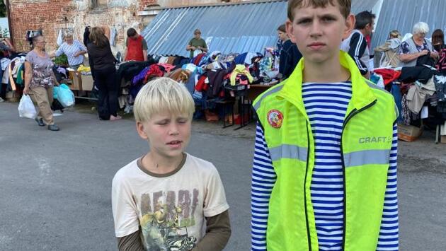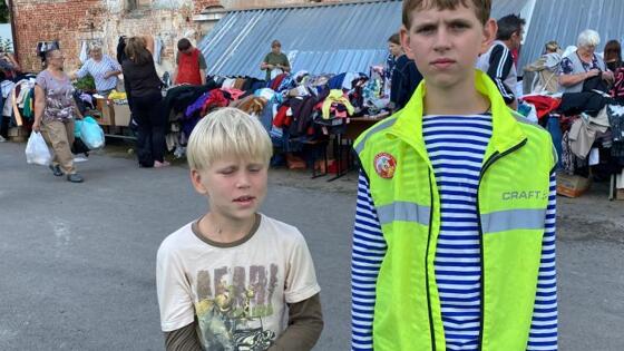 11-летний Ваня и 8-летний Коля, сыновья Иерея Константина Аристова, уже несколько дней трудятся в центре гуманитарной помощи на Тускарной, 1. Ребята так рассказывают о своей работе. Ваня: "Волонтеры регистрируют приходящих за гуманитарной помощью, выдают им талончик, я забираю этот талончик, бегу на склад, забираю там вещи, которые написаны в талончике, прибегаю и отдаю. Вот, собственно, это вся моя работа, либо в микрофон объявляю эти заказы, чтобы люди могли их получить. Я здесь уже три дня работаю, график у меня свободный. А еще мы нашли под забором кролика, назвали его Тускариком, вот ухаживаем теперь за ним". Коля: "Я помогаю на складе с едой, отдаю в регистратуре карточки, или на микрофоне работаю". На вопрос, почему ребята решили прийти в центр, говорят, что хочется помогать другим людям.