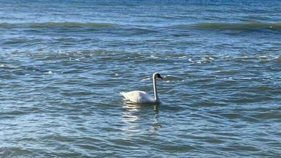 «Он не одинок, дома его ждут»: лебедь позавидовал туристам и тоже искупался в море