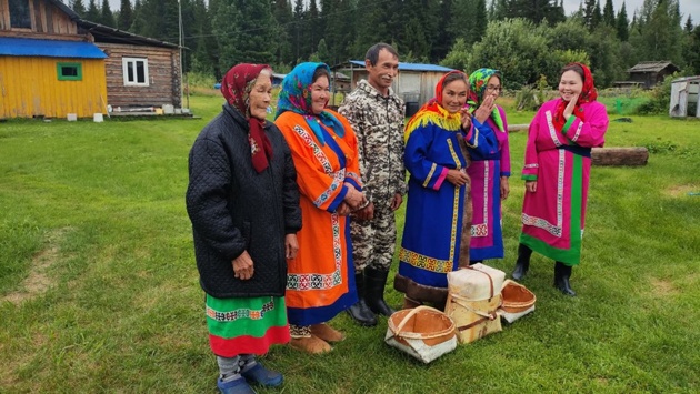 Гостей хантыйки встречают при полном параде: расшитые бисером яркие халаты (весят пару килограммов), цветастые платки, мягкая обувь - в такой бы красться за оленем. Руки грубые, мозолистые, загорелые - все от работы, охоты в лесу да рыбалки на реке. Но еще вчера хозяйки сподобились испечь белый хлеб в глинобитной печи нянь кер и теперь ловко орудуют на общей летней кухне под навесом, окуренной от комарья, нарезая ломти, раскладывая по эмалированным тазикам куски жареного щекура, разливая чай. Старшие молчаливы, кто-то вообще не говорит по-русски и отводит глаза, стесняясь. За столом одна лишь Раечка щебечет с сынишкой и изредка выдает тираду на сторону - девчонкой училась в школе-интернате в Демьянском, потому к публике привычная.