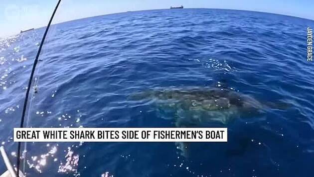 Акула-людоед напала на рыбацкую лодку и попала на видео