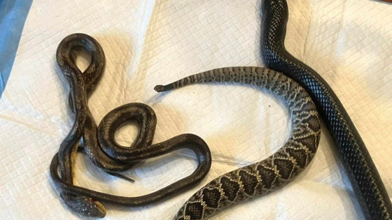 Сотрудник департамента природных ресурсов штата Джорджия США, запечатлел на фотографии восточную индиговую змею, которая умудрилась проглотить двух других змей. Об этом сообщает издание People.