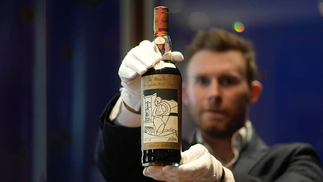 Виски Macallan Valerio Adami. Этот напиток был дистиллирован в 1926 году, а потом 60 лет выдерживался в дубовых бочках. Всего выпущено было только 12 таких бутылок, каждую из которых оформили художники Валерио Адами и Питер Блейк. Сегодня точно не известно, сколько из этих бутылок всё ещё целы.