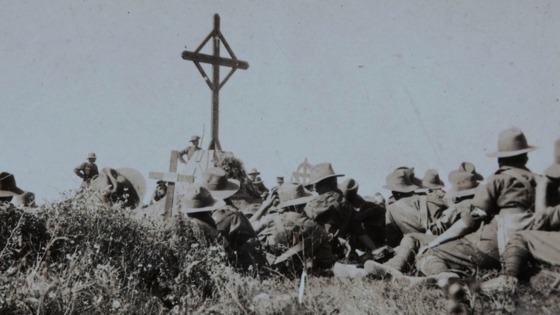 «Скоро в итальянском лагере воцарилось праздничное настроение, пленные сидели на корточках вокруг костров и пели под аккомпанемент аккордеонов, привезенных с собой».
