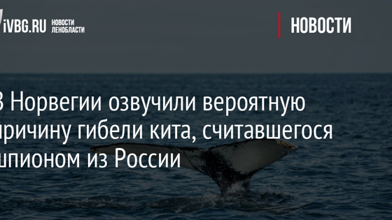 Эксперты полагают, что морское млекопитающее погибло от инфекции. В Норвегии выяснили причину гибели кита-белухи Хвальдимира, которого считали шпионом из России. Как передают СМИ, ссылаясь на Ветеринарный институт Норвегии, морское млекопитающее скончалось в результате бактериальной инфекции. Это подтверждают результаты вскрытия. Отметим, в конце августа кита, подозреваемого в шпионаже в пользу России, нашли мертвым на юго-западе Норвегии рядом с городом Ставангера. Местные специалисты исключают насильственную смерть Хвальдмира. На туше белухи не нашли ранений.
