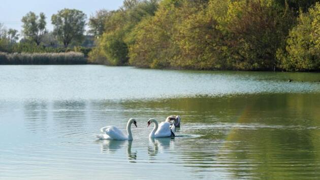 Семья лебедей поселилась в Хомутовском районе Курской области