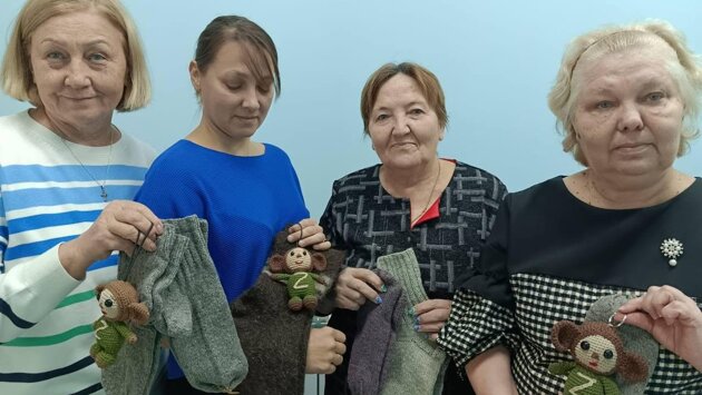 Активные долголеты трудятся под руководством волонтера Ольги Свиридовой. Они связали для солдат талисманы – маленьких симпатичных Чебурашек. Персонажа выбрали неслучайно – он добрый и отзывчивый.