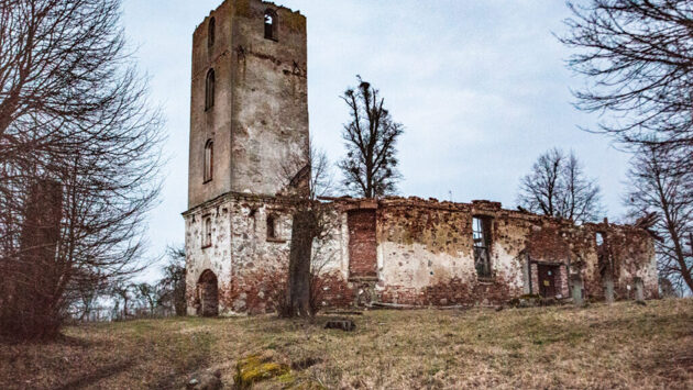 Затем саму кирху переоборудовали под склад, заделав окна, а башню, у которой обвалилась кровля — под водонапорную башню.