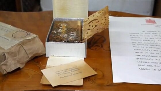 Один из таких кусков торта перешел экономке Холирудского дворца в Эдинбурге Мэрион Полсон в знак благодарности за подаренный ею десертный сервиз. После смерти Полсон кусочек хранился у нее под кроватью и был обнаружен лишь недавно.