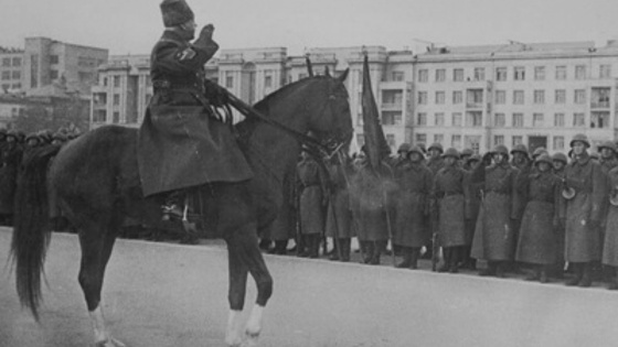 "Товарищи красноармейцы и краснофлотцы, командиры и политработники, партизаны и партизанки! <…> Пусть вдохновляет вас в этой войне мужественный образ наших великих предков — Александра Невского, Димитрия Донского, Кузьмы Минина, Димитрия Пожарского, Александра Суворова, Михаила Кутузова! Пусть осенит вас победоносное знамя великого Ленина!" — речь Сталина на параде в Москве, продлившемся 25 минут, была краткой. В руководстве СССР отдавали себе отчет о нависшей опасности. 29 октября 1941-го в Кремле погиб 41 человек — нацистская авиация сбросила бомбу на цитадель столицы. К отражению атаки готовились и 7 ноября. В случае, если бы она произошла, радиотрансляцию московского парада прервали бы: вместо нее готовилось прямое включение из Куйбышева (Самары). Одновременно с Москвой в этом городе также состоялся парад, и притом по числу участников даже больший — крупнейший в Советском союзе за время Великой Отечественной войны. Третий смотр (с участием будущего лидера СССР — Никиты Хрущева) в тот же самый день принимал прифронтовой Воронеж.