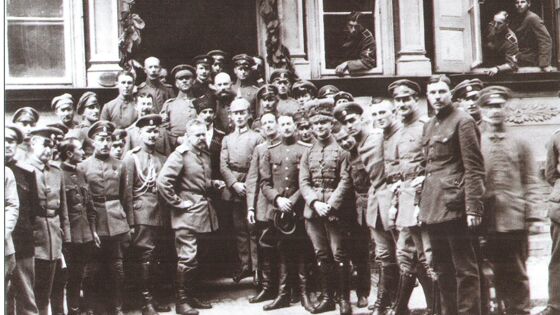 В это время Германия, проигрывая Антанте в целом, в результате революций в России побеждает на всем Восточном фронте. И начинает диктовать условия как большевикам (Брестский мир), так и сторонникам старых порядков. Ведя свою игру, немцы формируют вооруженные части белогвардейцев в Прибалтике из… немцев. Причем не местных прибалтийских, а из коренной Германии.