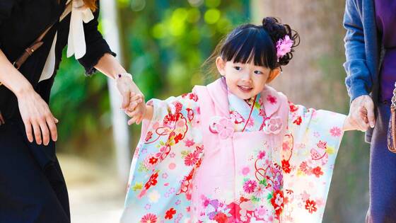 Сити-го-сан в переводе с японского означает «семь-пять-три» — этот праздник посвящен детям в возрасте трех, пяти и семи лет. В старину японцы верили, что в три года малыш произносит свои первые слова, в пять — начинает осознавать себя, а в семь лет боги даруют ему зубы.