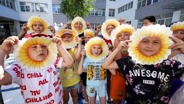 У всемирного детского праздника есть свой флаг: на зеленом фоне, обозначающем гармонию и здоровье, расположились пять разноцветных фигурок, которые символизируют разнообразие и единство всех детей на Земле.