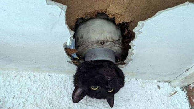В Англии пожарные спасли кота, застрявшего в водосточной трубе вниз головой, пишет Sky News. Кот по кличке Джон был найден застрявшим в водосточной трубе головой вниз. После того, как хозяева питомца позвонили спасателям, по адресу приехала команда пожарных. С помощью специальных инструментов специалисты обрезали кусок трубы, и животное оказалось на свободе. "Команда использовала лестницы и небольшие инструменты, чтобы помочь Джону", - говорится в заявлении. Первичный осмотр показал, что кот не получил серьезных травм. Несмотря на то, что питомцу проводили кислородную терапию и давали седативные препараты, пока пожарные делали свою работу, он чувствовал себя хорошо. "Глядя на эту морду, я не верю, что это повторится снова", - шутят пользователи соцсетей.