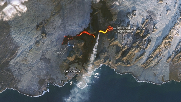 Новые снимки из космоса показывают, как лава подбирается к Голубой лагуне в Исландии