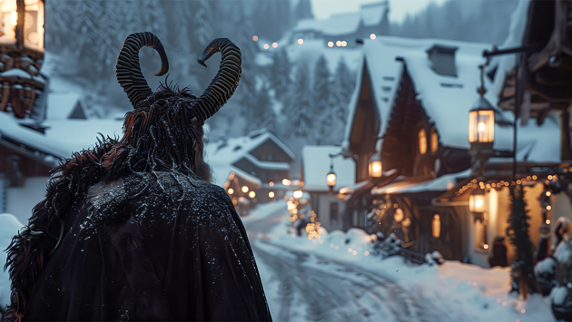 Крампус — мифическое создание из центральноевропейского фольклора, которое, как правило, выступает в роли антогониста Святого Николая. Он изображается как страшное, рогатое существо с длинными языками и острыми клыками, которое наказывает непослушных детей, в то время как Святой Николай награждает хороших подарками. По легенде, Крампус разгуливает по улицам в ночь на 5 декабря, терроризируя детей и прикрепляя их к своему мешку, если они провинились в течение года.