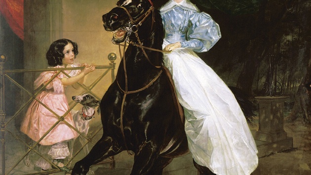 Эта картина стала первой зрелой успешной работой начинающего художника. Сразу после завершения она была выставлена в зале Миланской Академии изящных искусств Брера и стала настоящим открытием для публики. Многочисленные хвалебные отзывы в европейской прессе предвосхитили славу Брюллова в России. Картина была написана по заказу графини Юлии Самойловой - долгое время считалось, что именно ее изобразил художник. Но впоследствии искусствоведы пришли к выводу, что в качестве наездницы была изображена воспитанница графини, а маленькая девочка на картине - это ее приемная дочь.