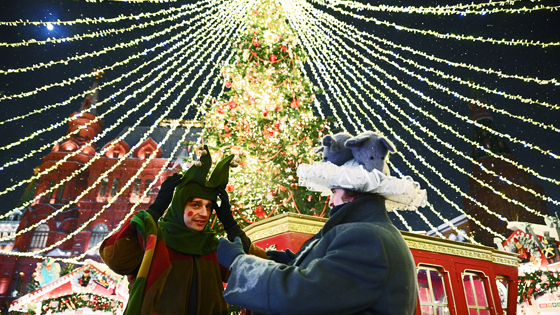 В центре новогоднего антуража — переколоченная на европейский манер елка, на верхушке которой снова появились ангелы. А вот со звездами вышло интересно. До сих пор, как минимум, на половине уличных елок можно увидеть не Вифлеемскую, а вполне себе кремлевскую, советскую красную звезду.