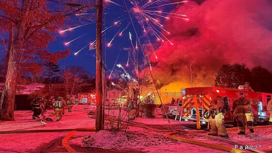 В местной спасательной службе сообщили, что в дополнение к обледенелым условиям, спасатели столкнулись со взрывами фейерверков и выбросами газов из баллонов с пропаном при попытках потушить пожар.