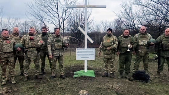 Атаман Всероссийского казачьего общества Виталий Кузнецов, атаман Волжского казачьего войска Константин Давитьян и атаман Северо-Западного казачьего войска Максим Бугой по благословению митрополита Ставропольского и Невинномысского Кирилла установили поклонный крест на месте тяжелых боев на территории ДНР, сообщается в Telegram-канале Всероссийского казачьего общества. Как отметил Кузнецов, поклонный крест является символом веры. "Этот символ веры защитит наших бойцов и приблизит нашу общую победу", - сказал он.